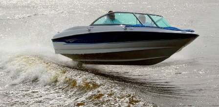 Резких разворотов на скорости катер не любит — хватает винтом воздух, даже если поджать колонку. «Прыжок за своим хвостом» (если резко газануть с вывернутым рулем) тоже не удался — реакция умеренная либо же винт опять ловит воздух. Может, оно и к лучшему, учитывая, что лодку очень часто покупают новички-водномоторники: меньше шансов резким маневром «выбросить» пассажира из кокпита. Зато крен на виражах довольно слабый, лодка остойчива как в статике, так и в динамике (опять-таки плюс с точки зрения безопасности), циркуляция на среднем ходу — порядка двух корпусов.