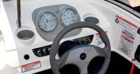 В пассажирской консоли — глубокая полка и врезанный сюда комплекс стереосистемы. В рулевой — приборная панель в классическом стиле, с циферблатами приборов и тумблерами электросистем. Скорость, обороты двигателя, датчики топлива, контроль состояния двигателя и положение тримма — просто и исчерпывающе.