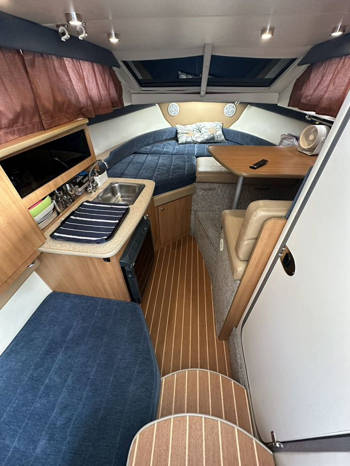 Двигaтeль дизельный МеrСruisеr QSD 2,8 л, Смаpткрафт с электронным управлением и колонкой Вrаvо 3 Х. Очень экономичный: расход 5 литров в водоизмещающем режиме; 20 литров в час на крейсерской скорости. Максимальная скорость 55 км/час.