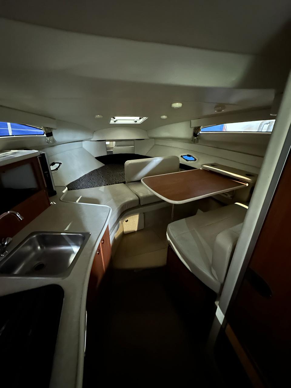 Bayliner 265 SB прекрасно держит волну, устойчив на курсе и обладает хорошей остойчивостью. А мощний двигатель в 300 л.с. и плавные обводы корпуса позволяют катеру быстро выходить на глиссирование.
