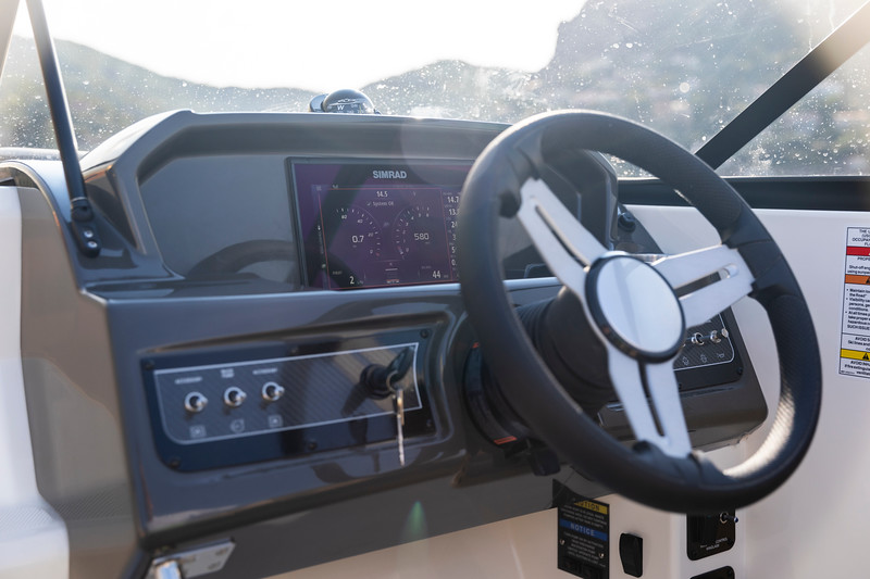 - Боковая панель управления двигателем с тримом и регулировкой наклона на ручке Регулировка наклона