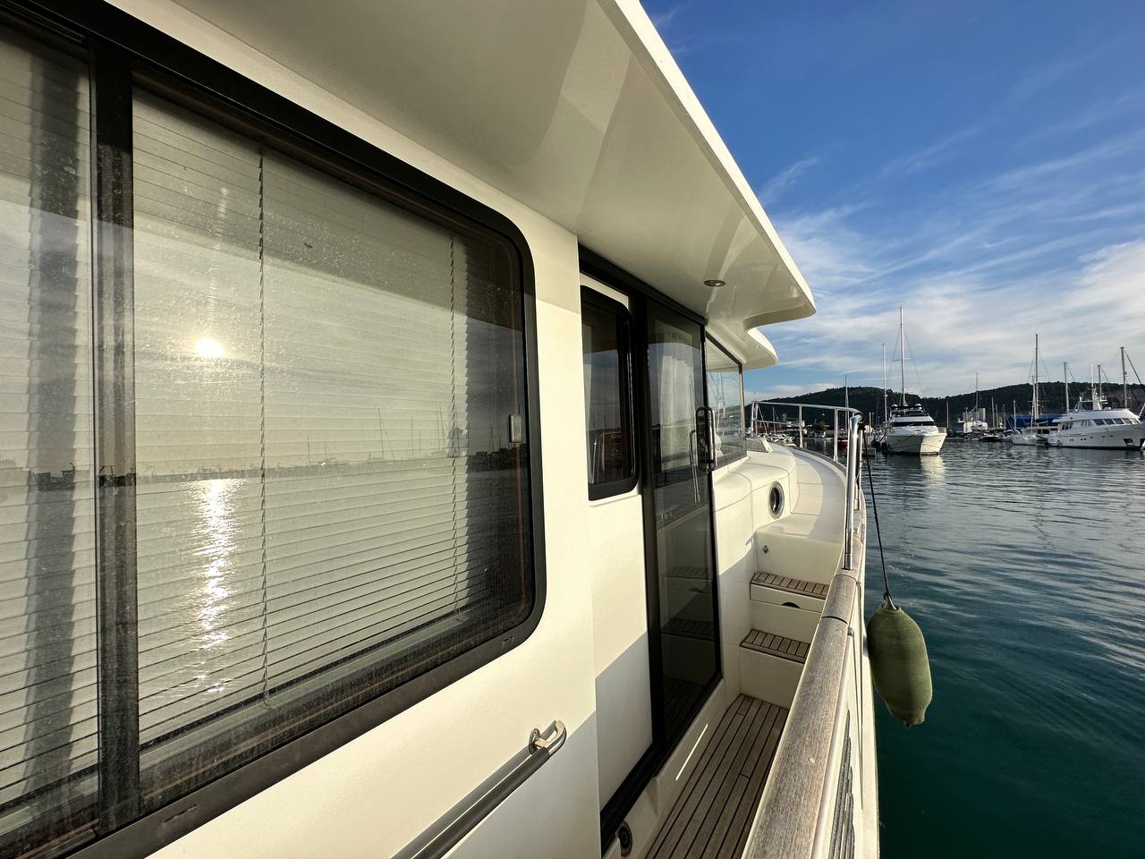 - Поручень из нержавеющей стали у входа на боковую палубу по левому борту