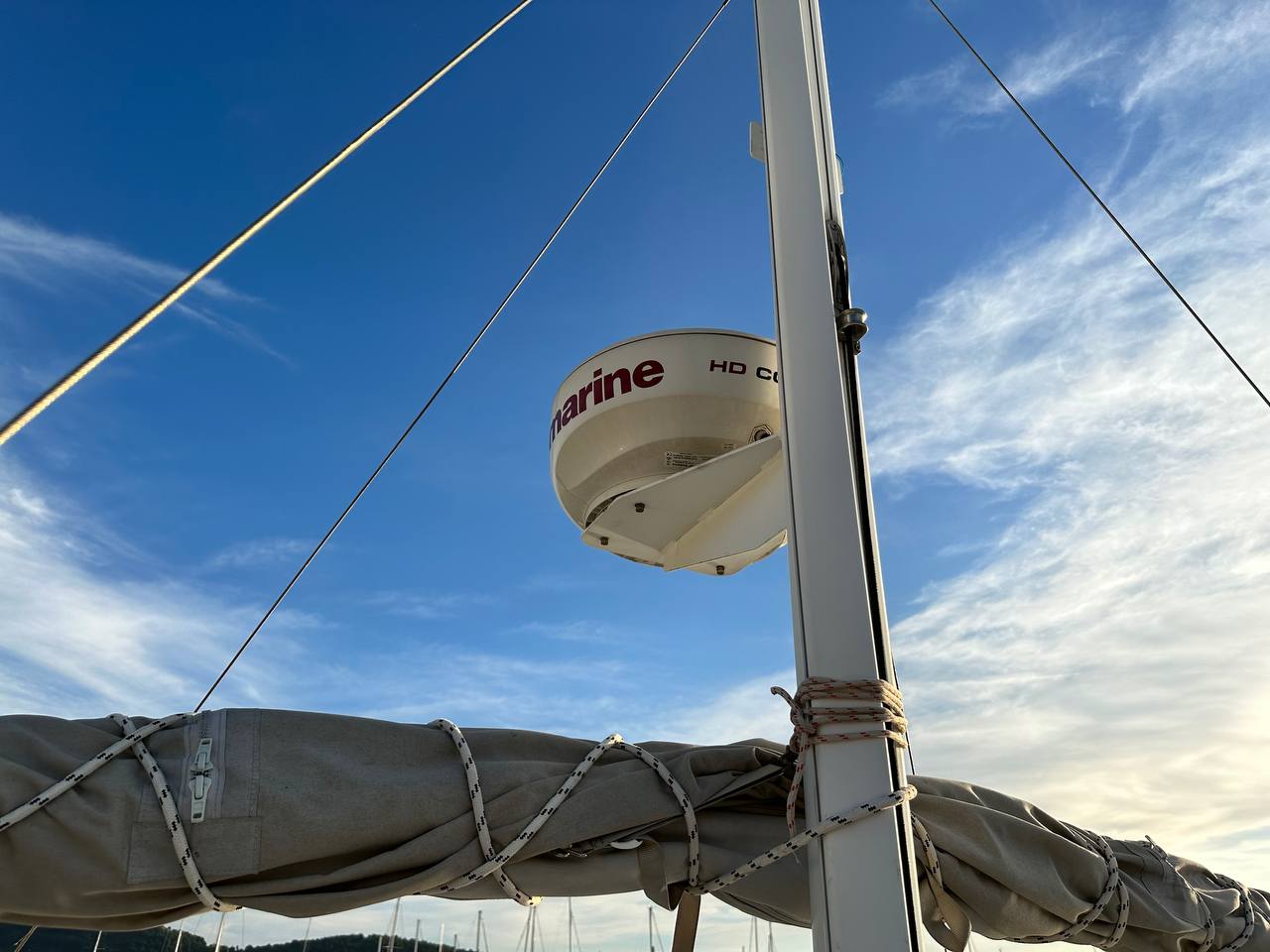 - Белая лакированная поворотная мачта, крепление для навигационных огней, радара, антенны и палубный прожектор