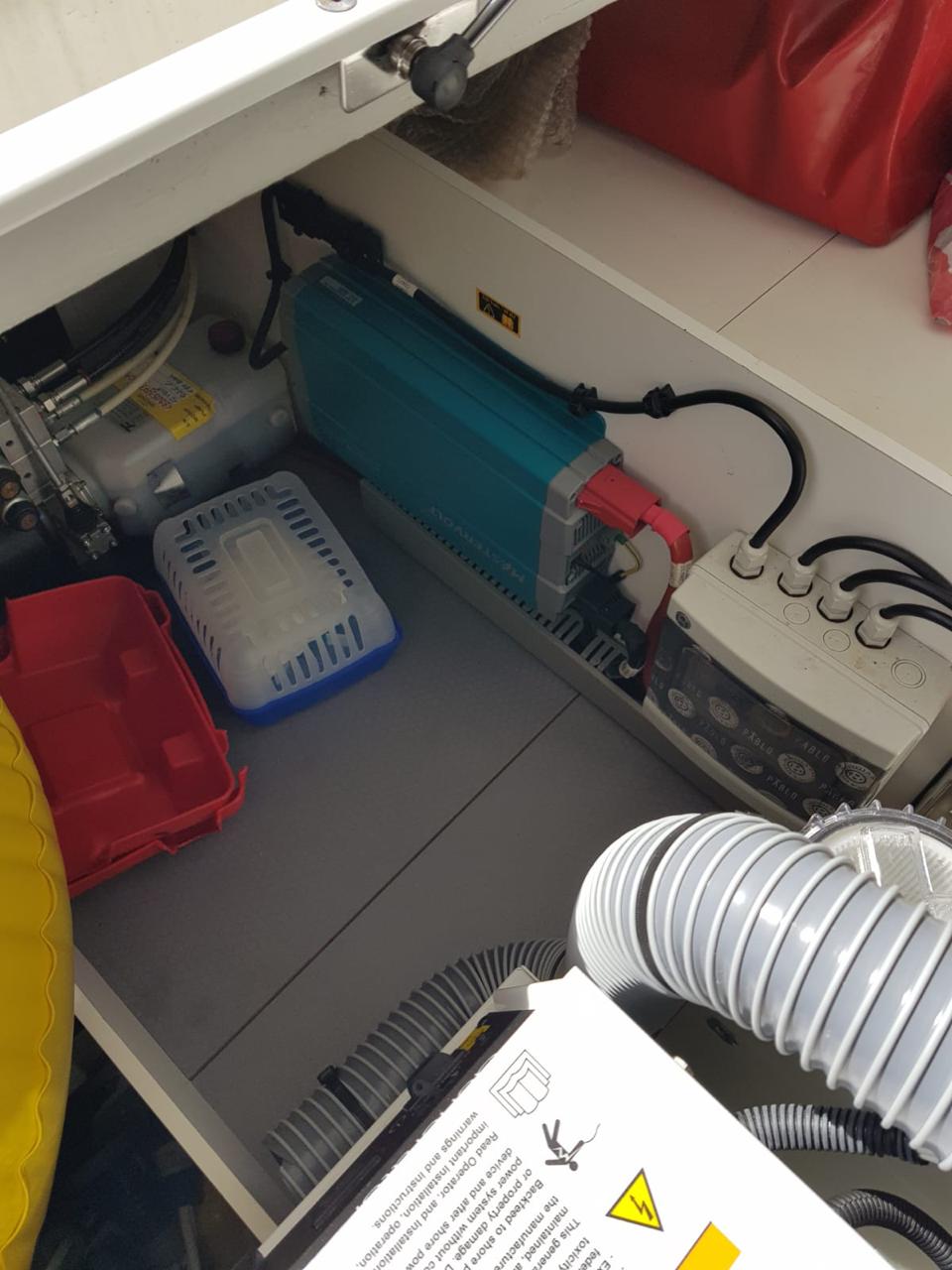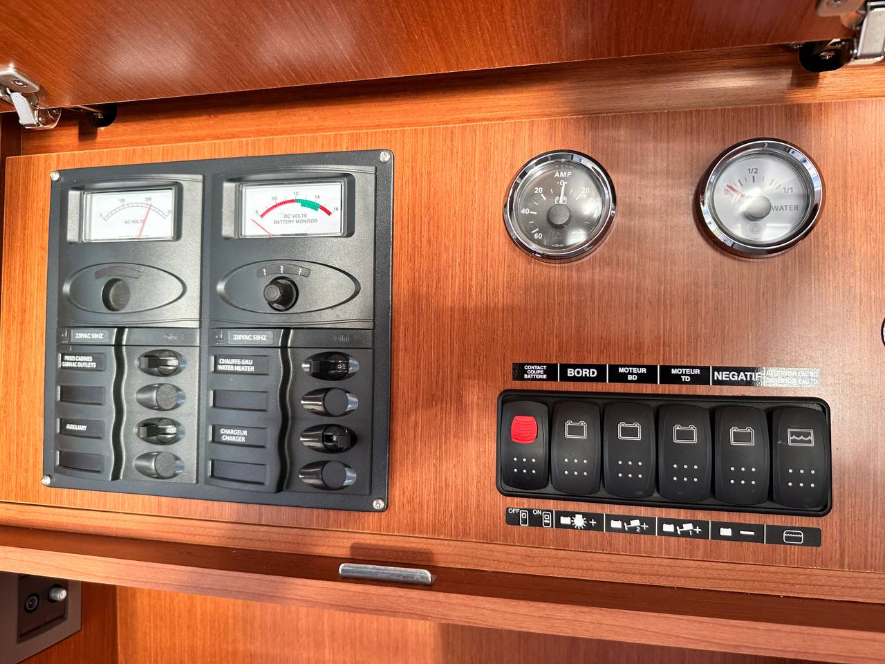 - 8 розеток 220 В (2 в салоне, 2 на камбузе, 1 в каюте владельца, 1 в гостевой каюте, 1 в носовом санузле, 1 в кормовом санузле), + 2 для ТВ (салон + каюта владельца)