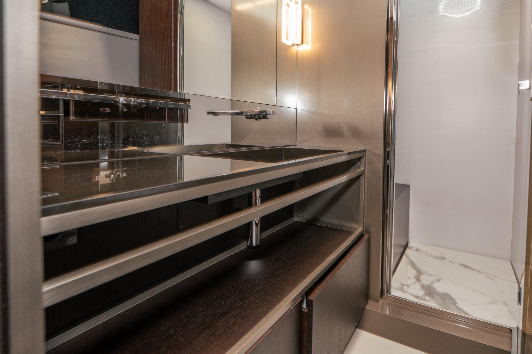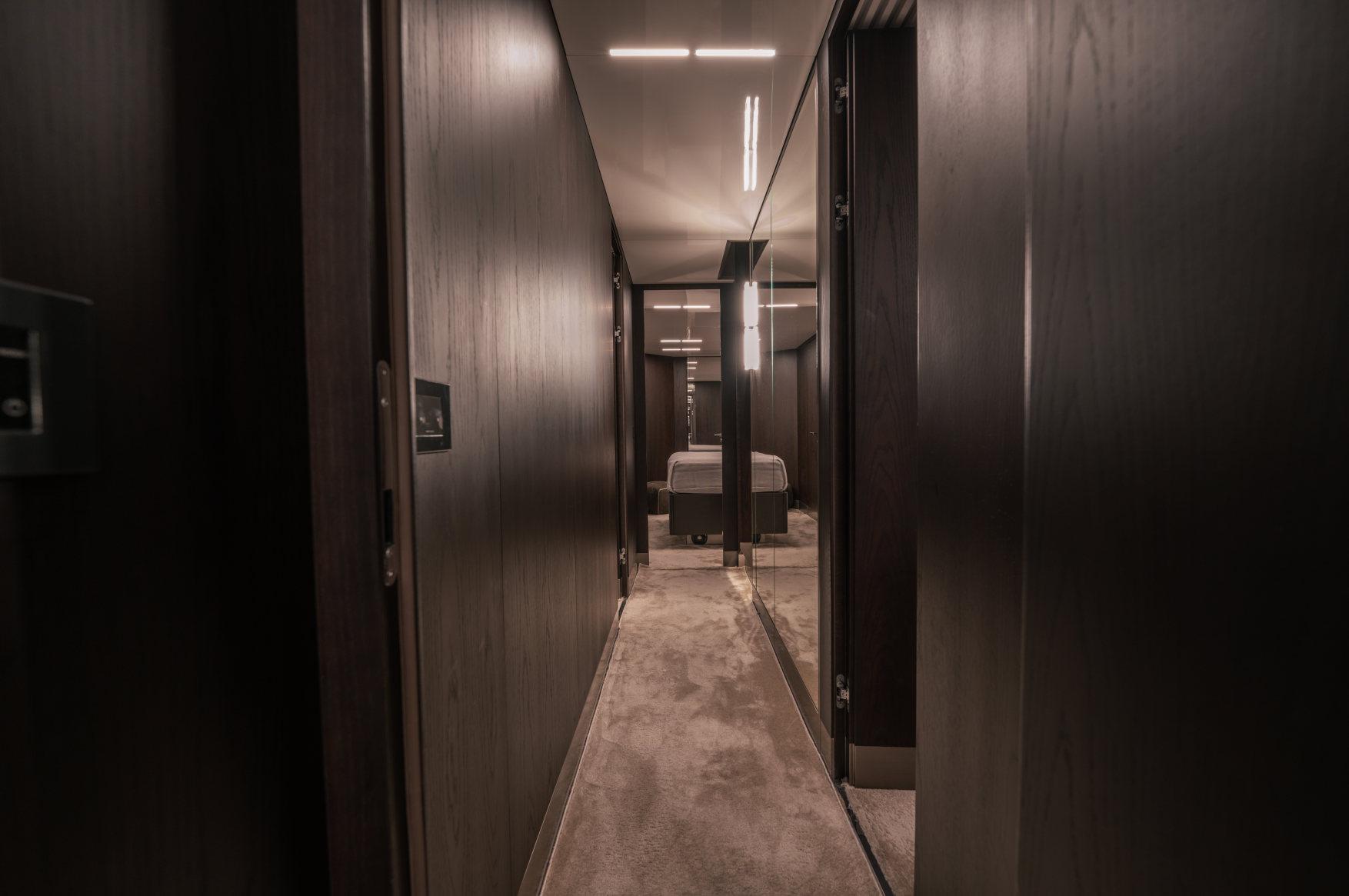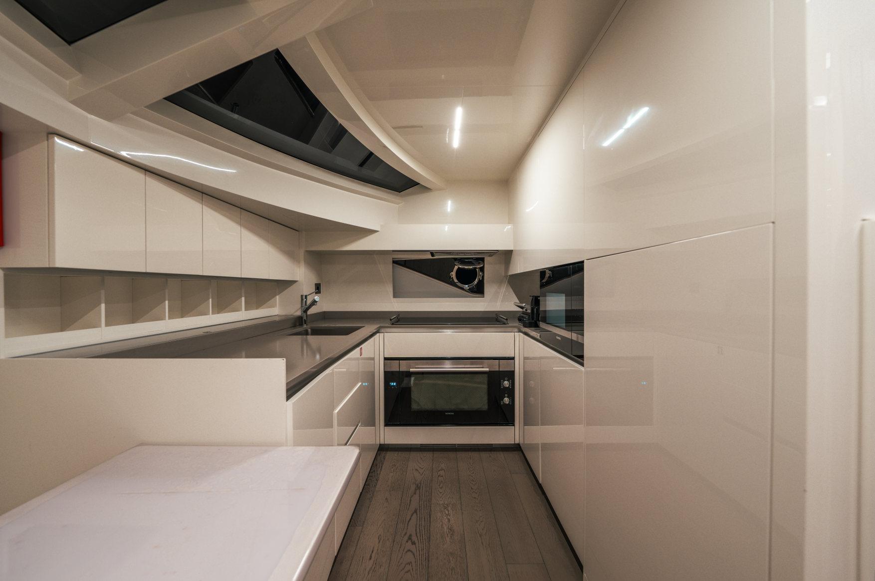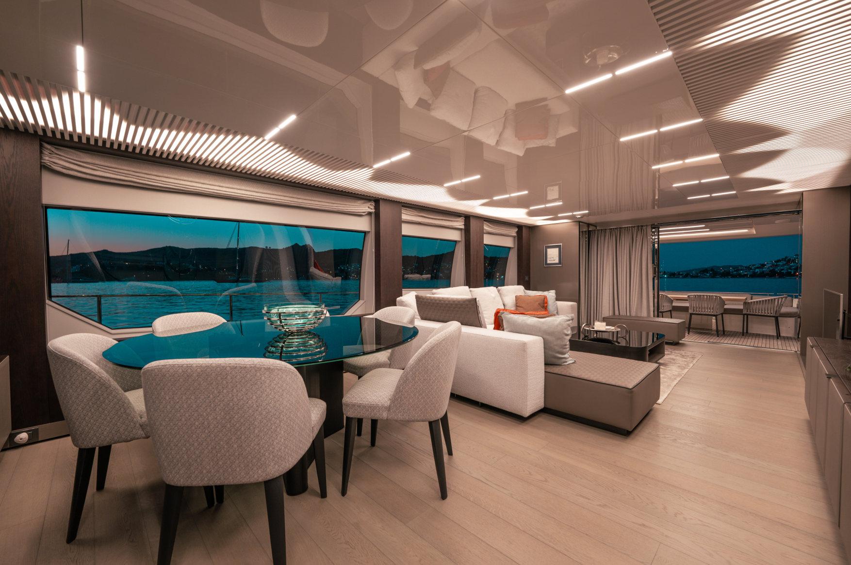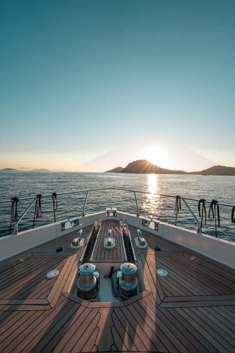 - Каюты: 4 гостевые каюты с собственными санузлами с душем, в том числе полноразмерная мастер-каюта, и 2 каюты для экипажа из 3х человек с одним санузлом с душем.