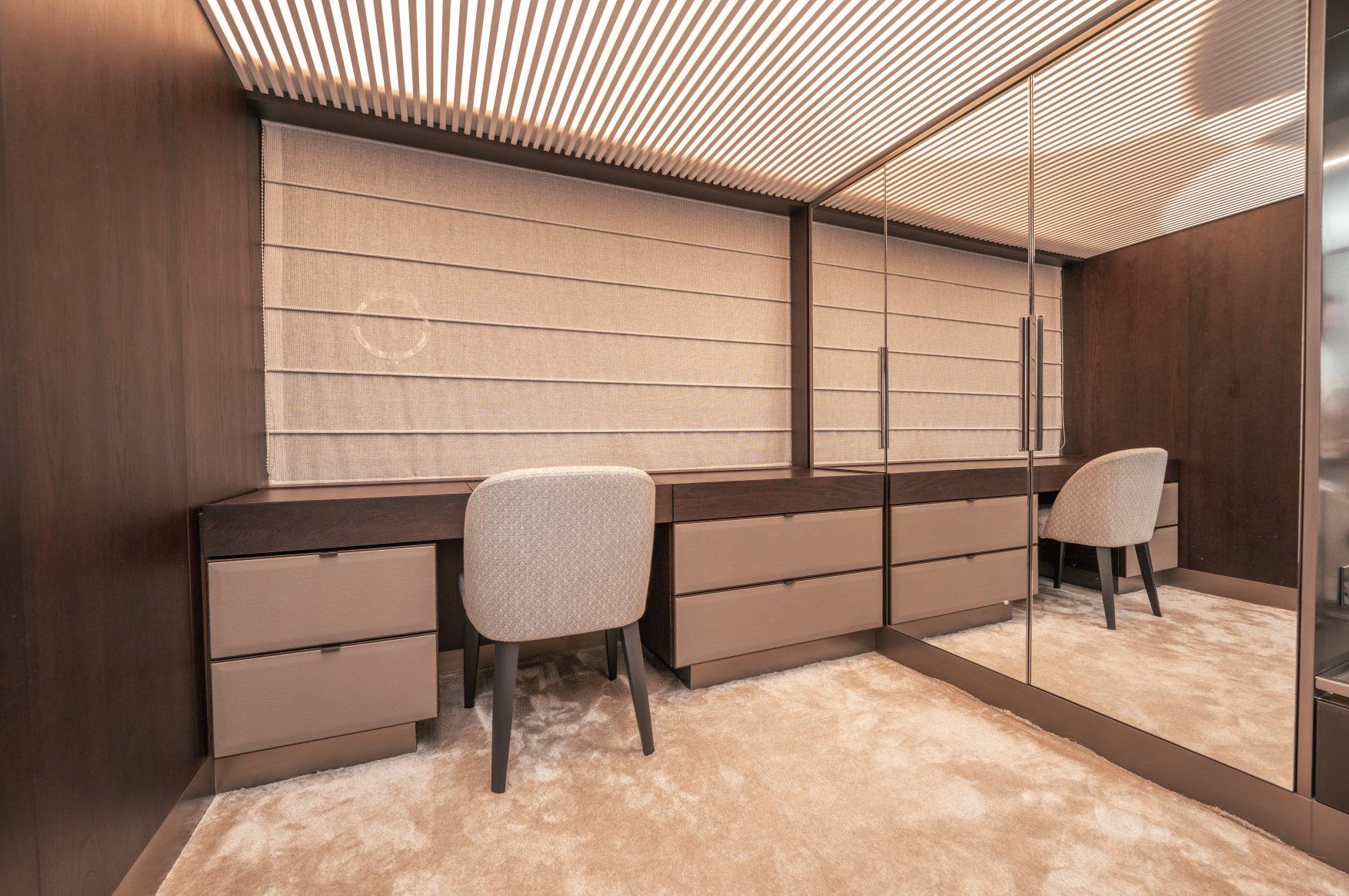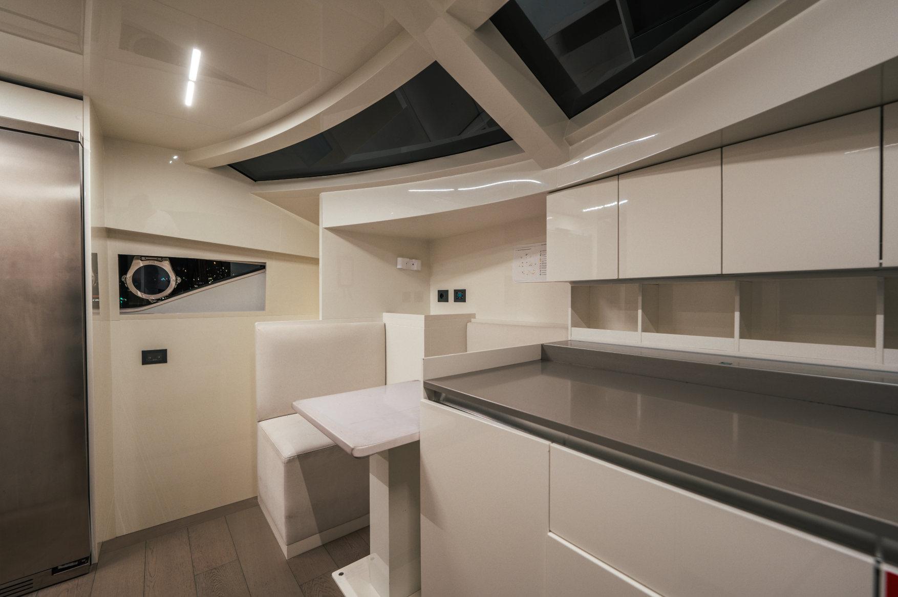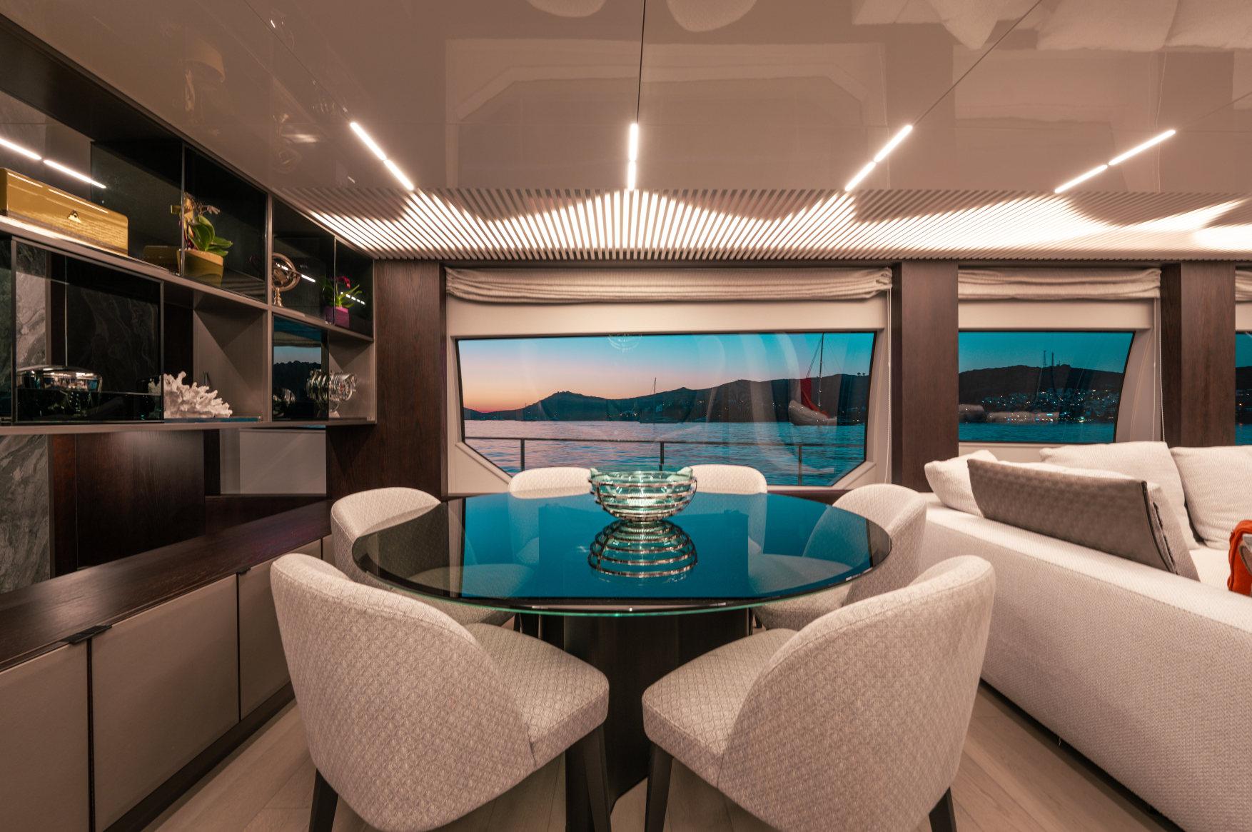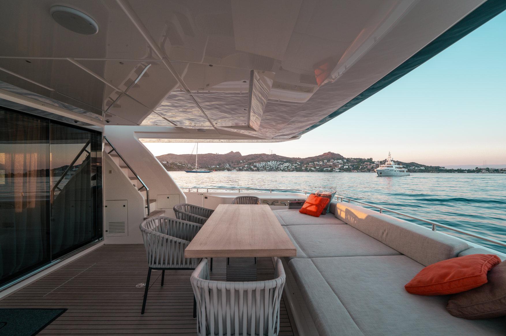 Роскошь, мощь и стиль сочетаются в этой модели с динамичными, плавными линиями, приковывающими взгляд. Эксклюзивность правит волнами. Энергичная и соблазнительная яхта Ferretti 850 покорит ваше сердце с первого взгляда своим угловатым стилем и яркими линиями, излучающими величие и стиль. Два встроенных окна со встроенными иллюминаторами имеют обтекаемую форму, а их огромные размеры наполняют интерьер естественным светом и великолепными видами. Главная палуба усиливает динамичность общего дизайна: единое застекленное пространство охватывает всю надстройку и дополняет продольный жесткий верх над приподнятым постом управления. Дверь гаража открывается с помощью специального механизма, демонстрируя пляжную зону, которая опускается под воду как большая подводная платформа для отдыха гостей (и удобный способ для экипажа управления тендером). Крытые стены, окна от пола до потолка, волнистые шторы и множество отдельно стоящей мебели — вот ключи к концепции, которая является ультрасовременной, но теплой — и все это в непревзойденном стиле Ferretti Yachts.