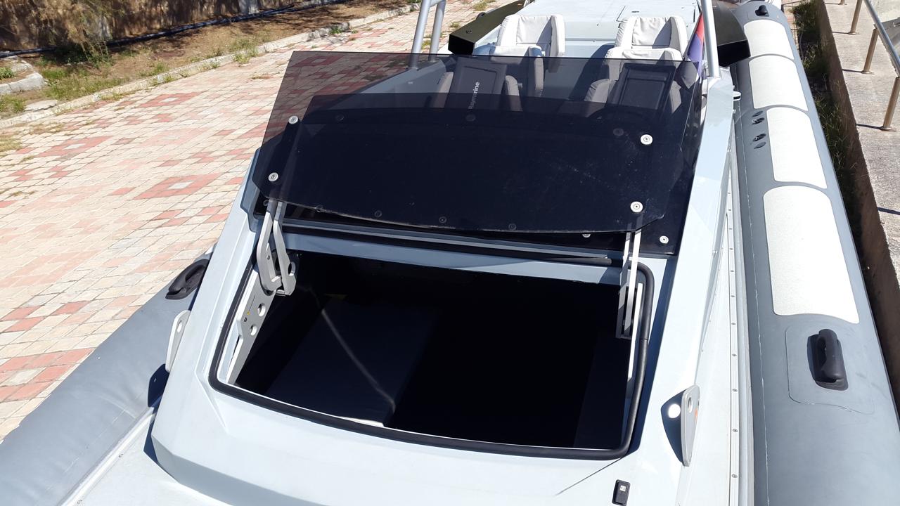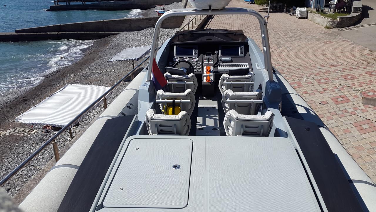 - система гидравлических транцевых плит (позволяет выбирать максимально комфортные режимы хода и глиссирования на большой скорости даже при значительном волнении моря).