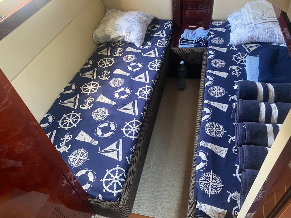 - Камбуз: микроволновая печь, 2-конфорочная инверторная плита, ледогенератор U-Line, холодильник на кухне, винный шкаф на 15 бутылок, мойка
