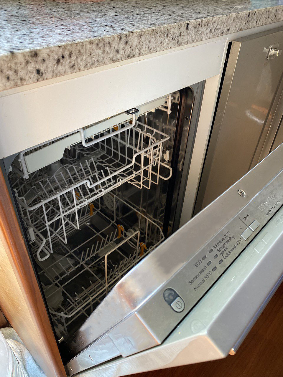 - Подсобное помещение оснащается полноразмерным посудным шкафом и даёт возможность установки дополнительной стиральной машины/сушилки