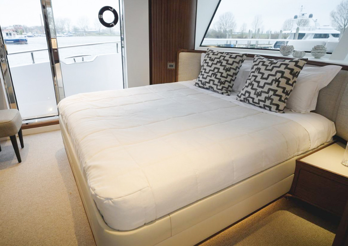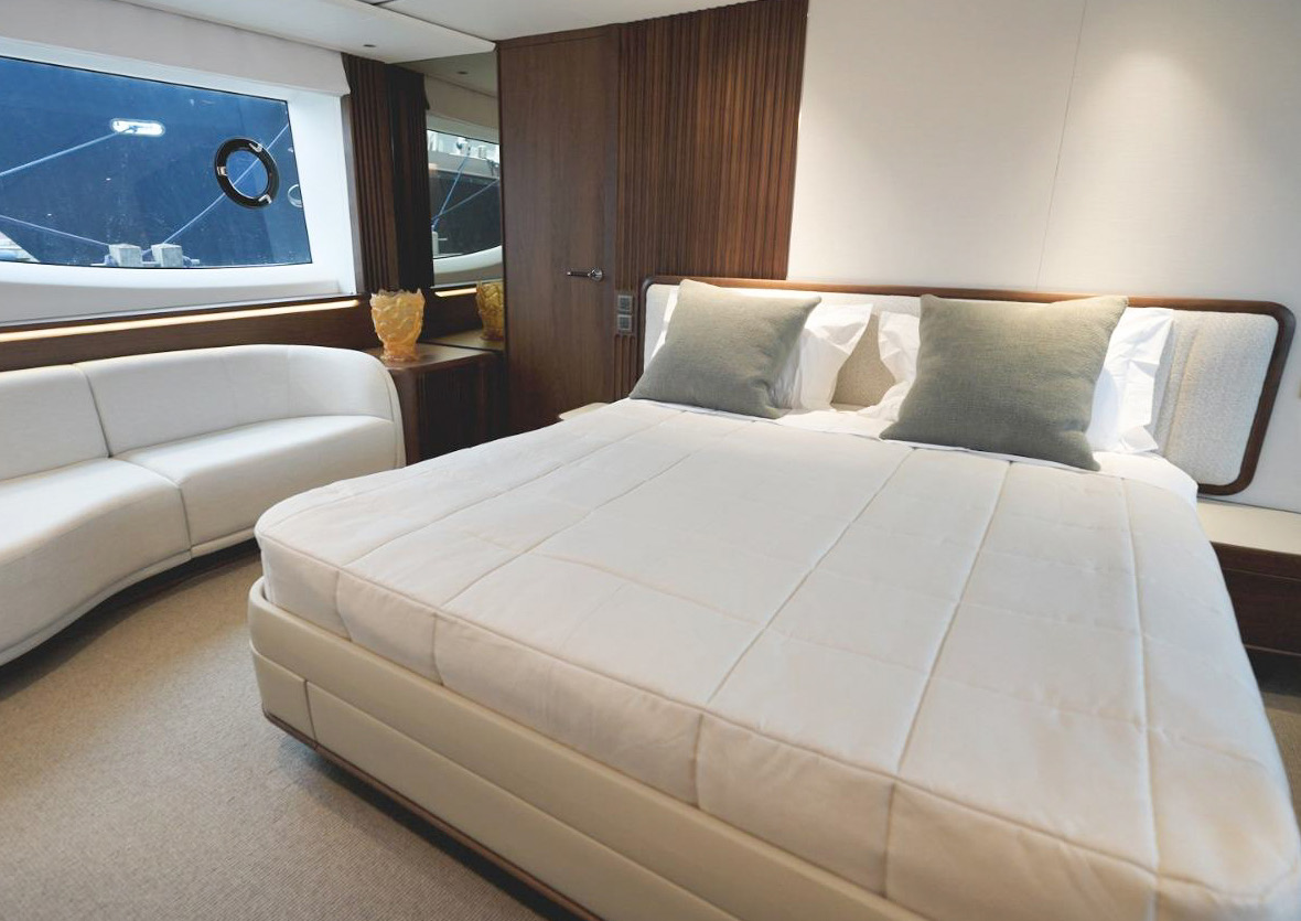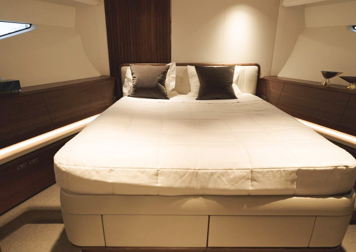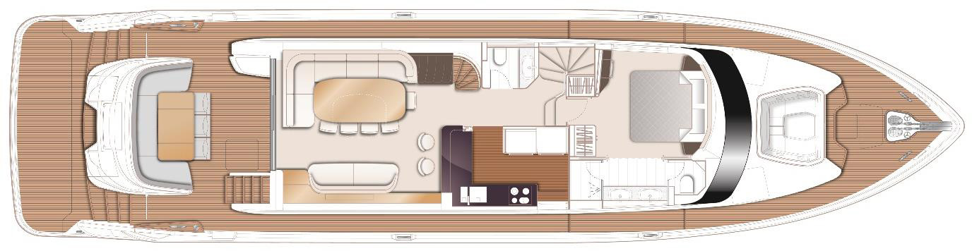 Скай-лаунж во всю ширину корпуса плавно переходит в расширенную палубу «Superfly», а апартаменты владельца на главной палубе с собственной террасой в носовой части создают атмосферу пентхауса в море, обычно встречающуюся на гораздо больших яхтах.