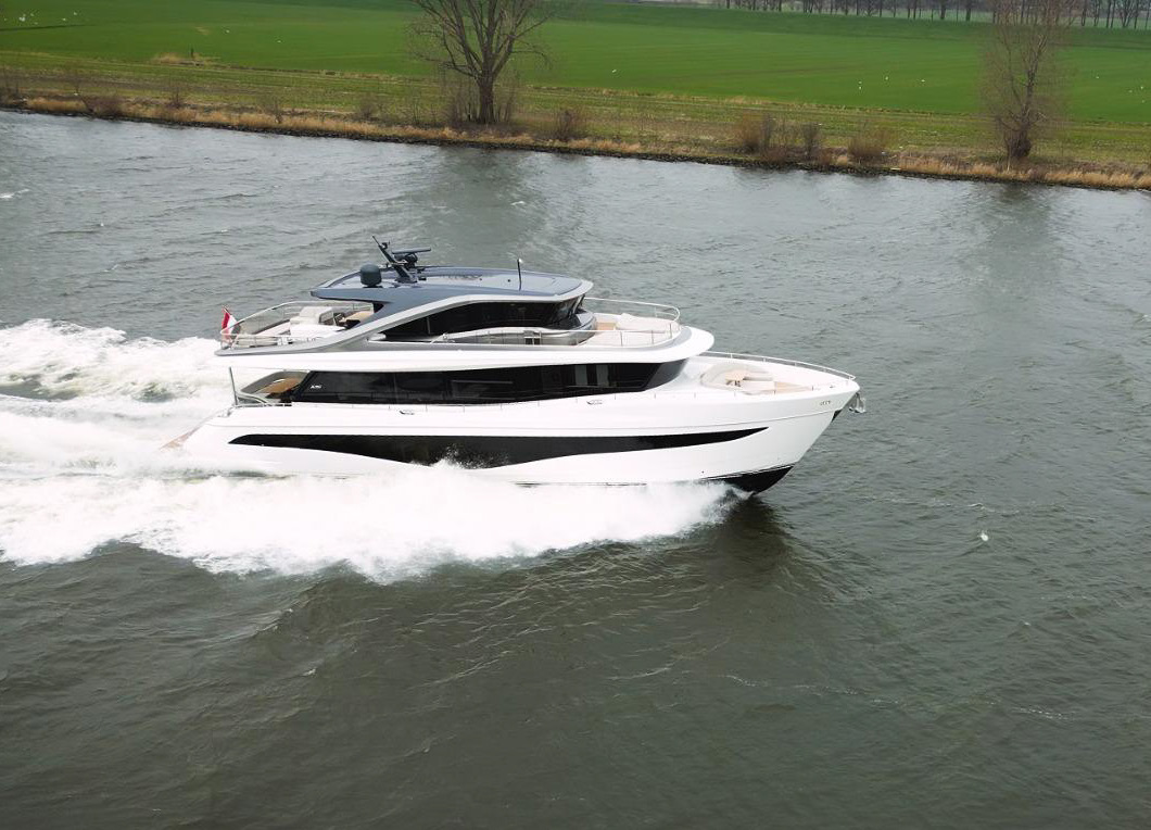 Величие Princess X80 впечатляет. Увеличенные фальшборта, надводные борта и закрытая рулевая рубка подчеркивают ее гордый характер. S-образный навес плавно перетекает во флайбридж, создавая баланс и умело скрывая обширный лаунж на крыше, с панорамным обзором и трансформируемой системой сидений.