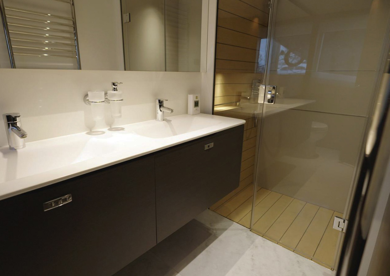 Четыре тихие гостевые каюты увеличивают вместимость до десяти человек, каждая с собственной ванной комнатой.