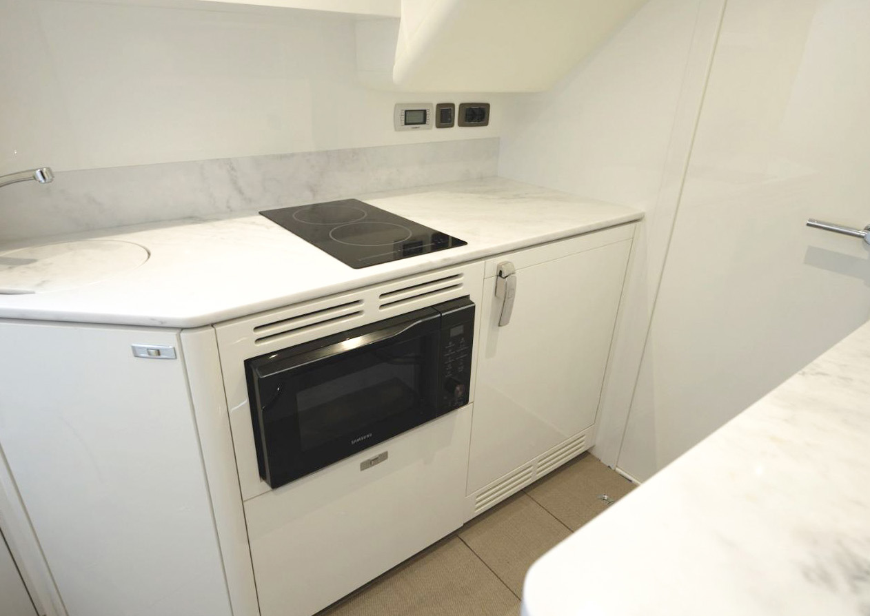 Возможность сочетается с комфортом благодаря тщательно продуманным удобствам: тропический кондиционер мощностью 270 000 БТЕ, два генератора Onan мощностью 27 кВт, опреснитель производительностью 190 литров в час, интернет 4G и камбуз, оборудованный техникой Miele, обеспечивают автономность и комфорт, где бы вы ни путешествовали.