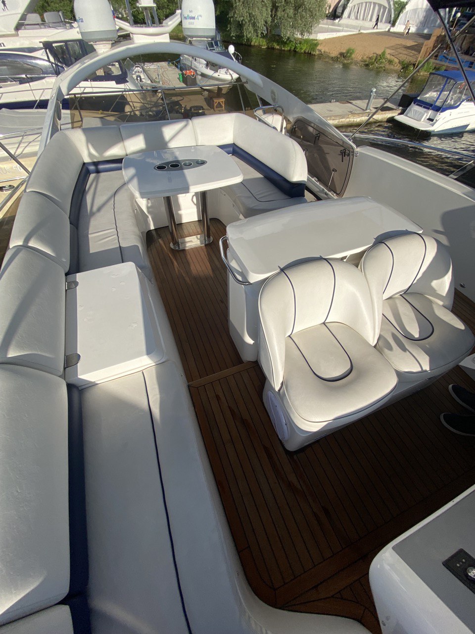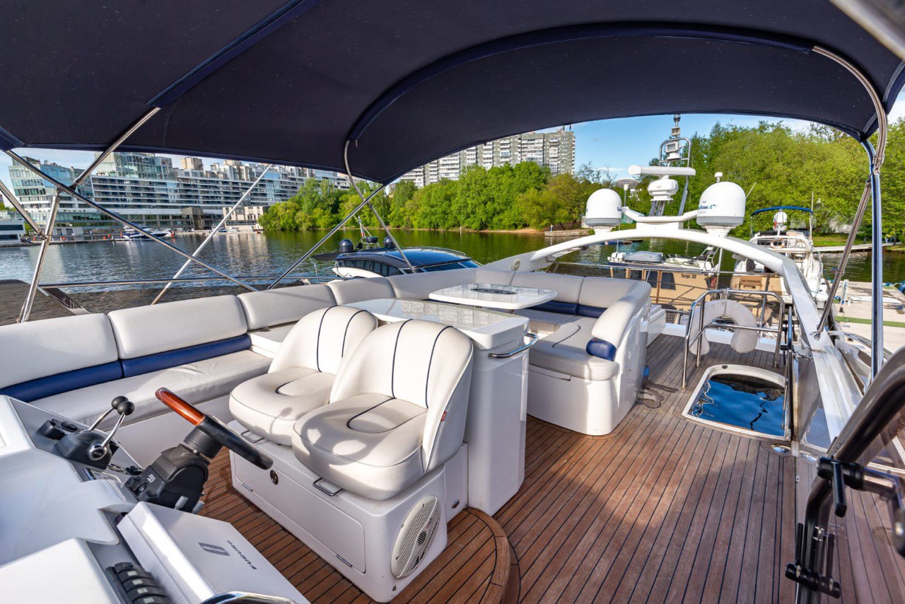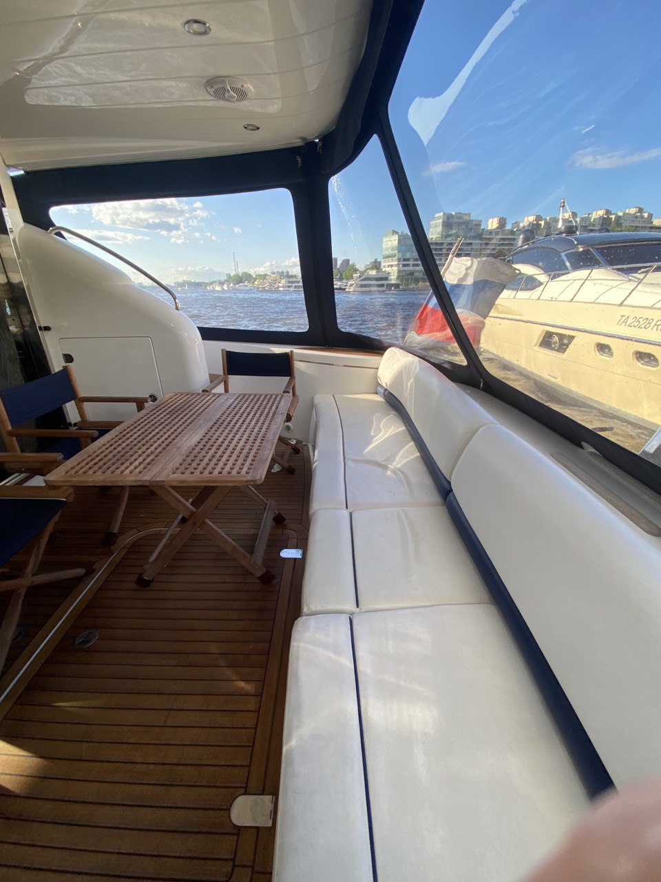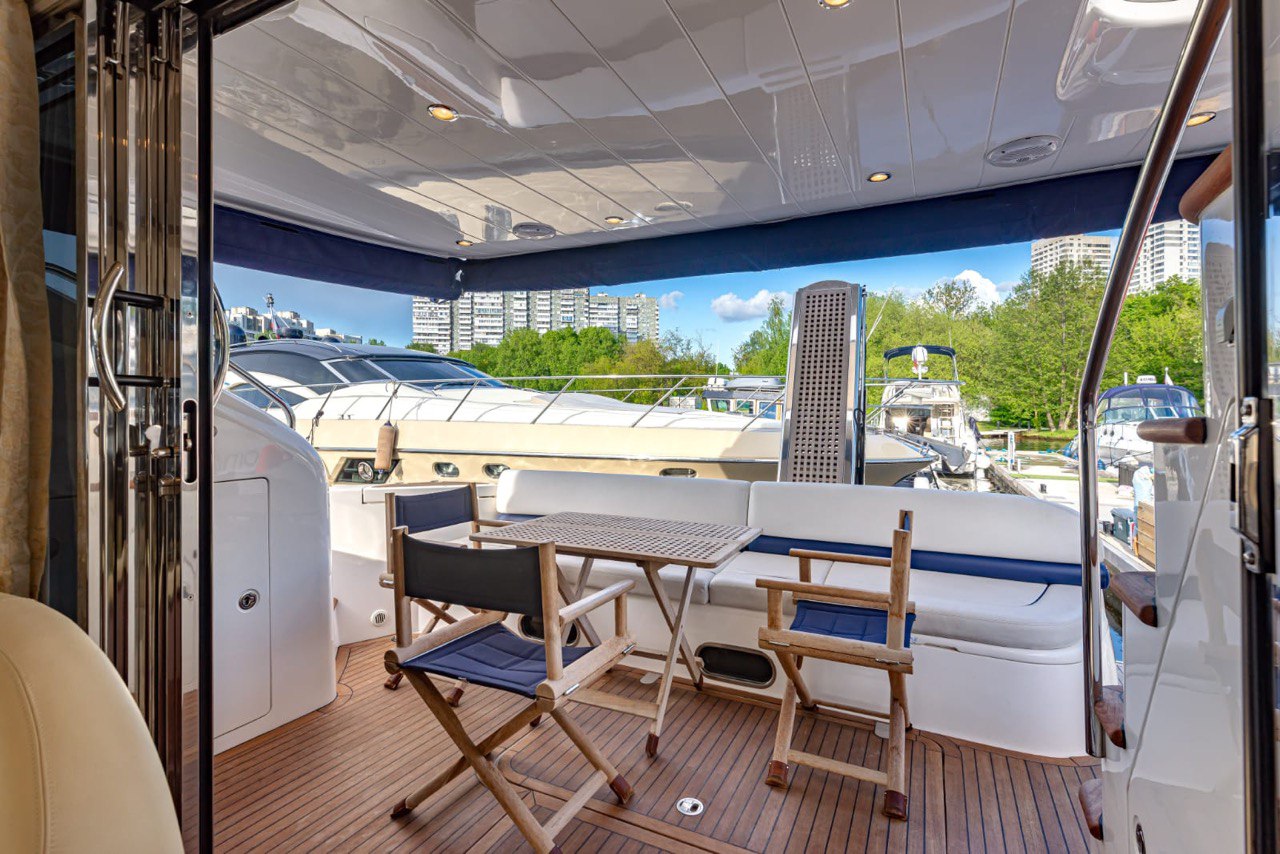 Для удобства был установлен ходовой тент с возможностью быстрой уборки, обеденная зона на флайбридже увеличена, установлена качественная музыкательная и развлекательная системы.