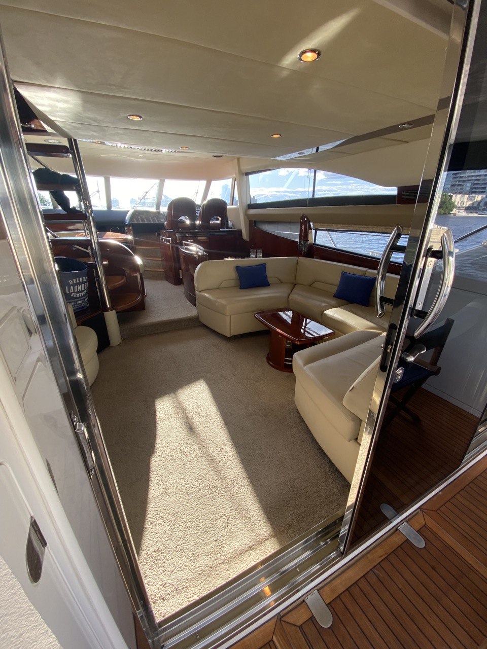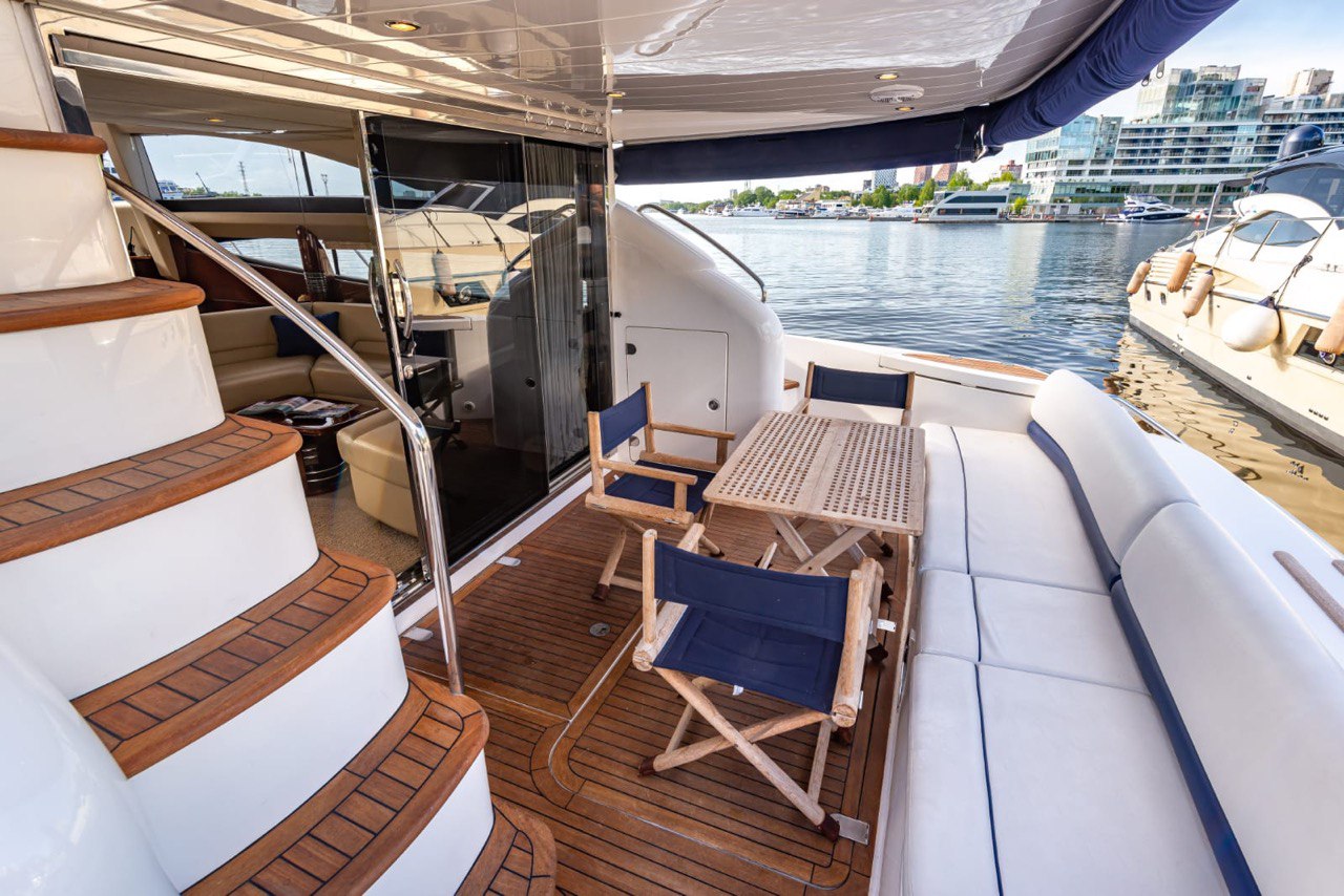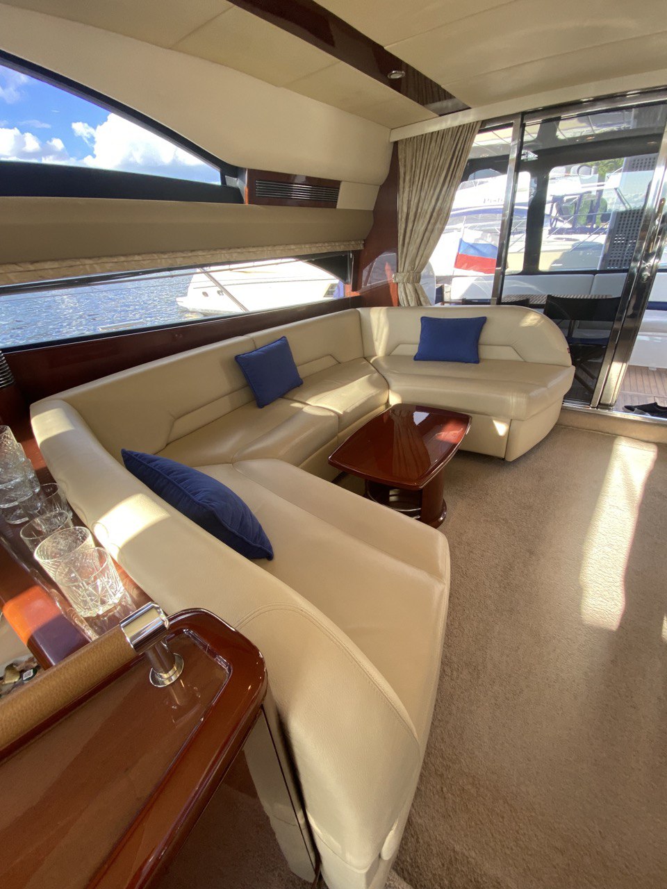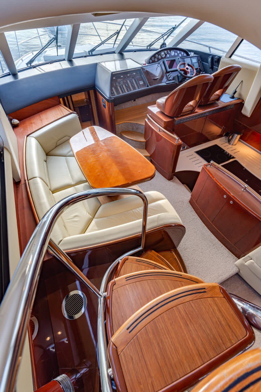 Для удобства был установлен ходовой тент с возможностью быстрой уборки, обеденная зона на флайбридже увеличена, установлена качественная музыкательная и развлекательная системы.