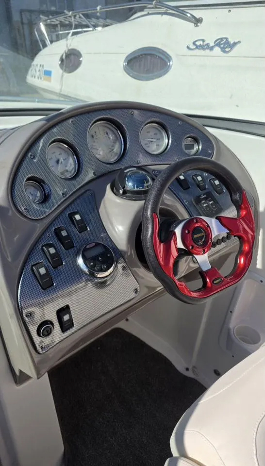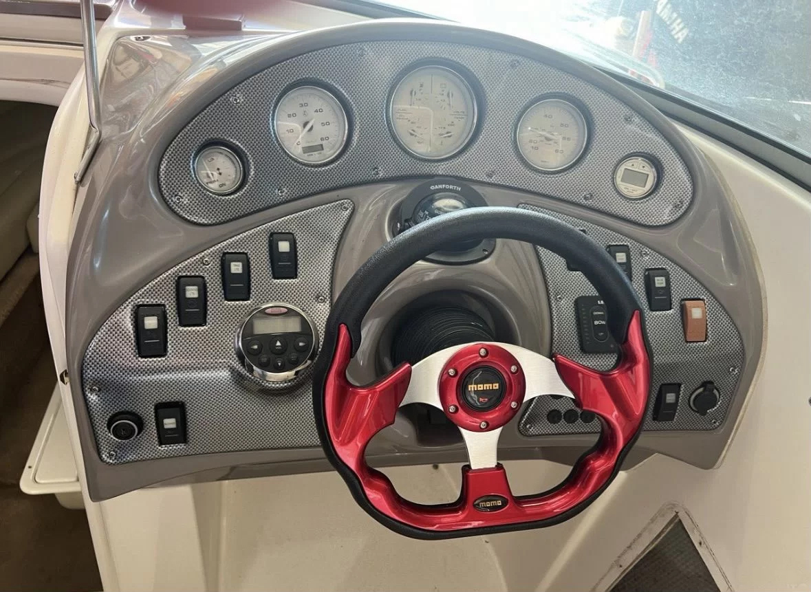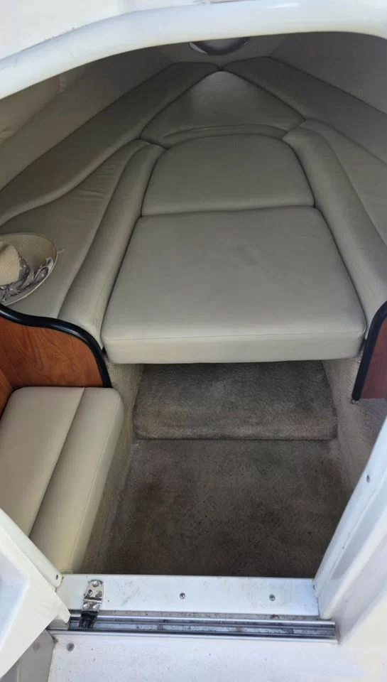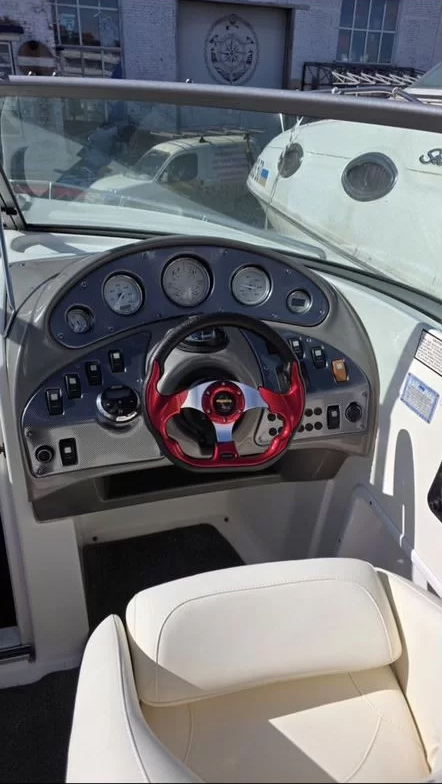 Катер после глобального рефита в 2026 году: корпус полностью отполирован, новый салон кокпита из карбонового морского винила, спортивный штурвал, стереосистема, низкий чехол кокпита, спортивная радарная арка. Раковина в кокпите. В каюте место для биотуалета. LЕD-фары.