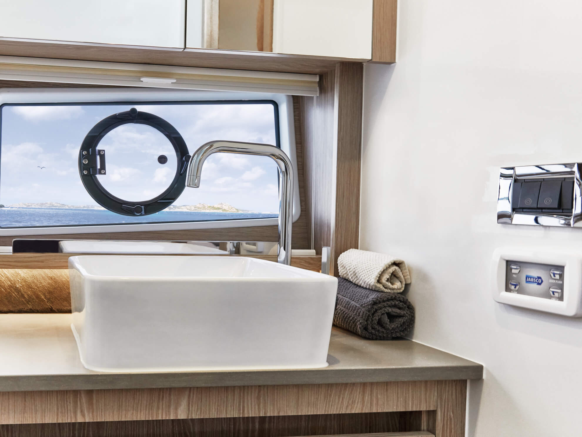 - Свет в каютах, салоне и камбузе с диммером (регулятором мощности). Регулируемый по мощности ненаправленный свет и лампы для чтения в каютах. Освещение в туалете, кокпите и моторном отсеке.