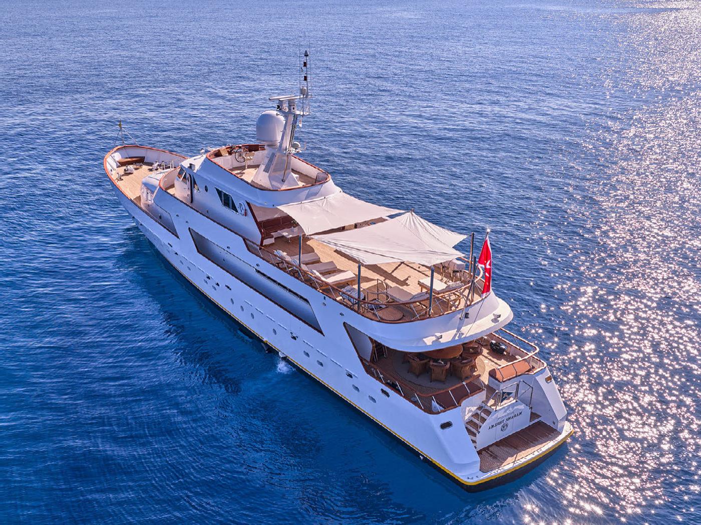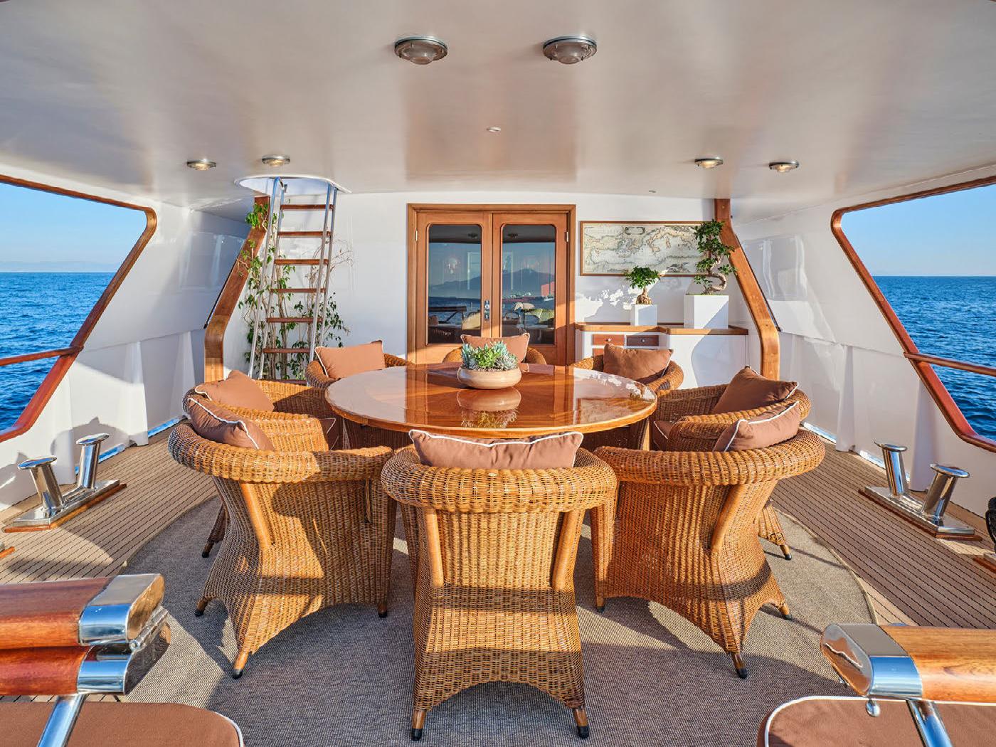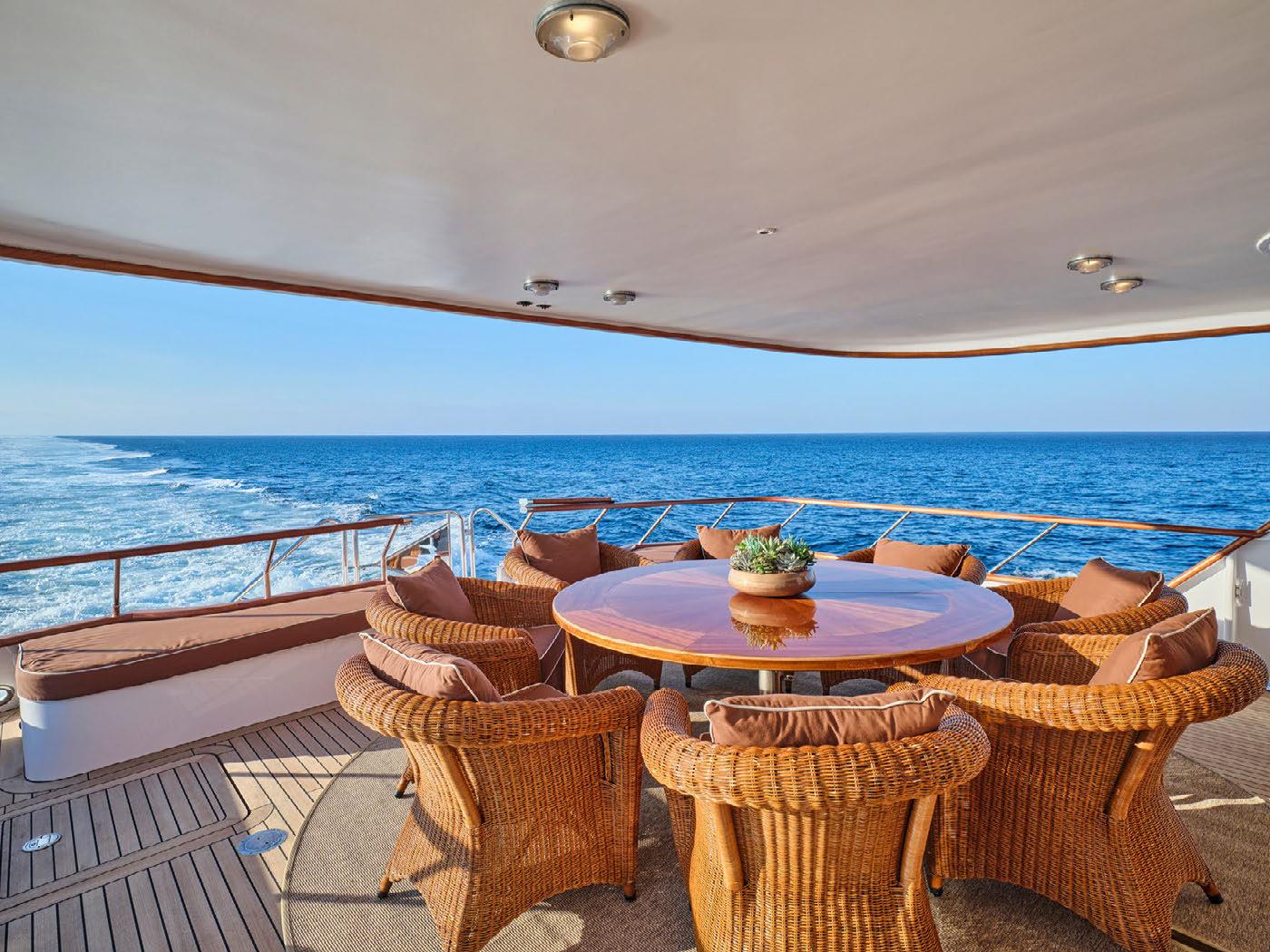 Помимо уютных внутренних помещений, яхта предлагает множество удобств на открытом воздухе, от просторной кормовой верхней палубы до открытых шезлонгов и зон для принятия солнечных ванн, обеспечивая гостям возможность наслаждаться морем при каждой возможности.