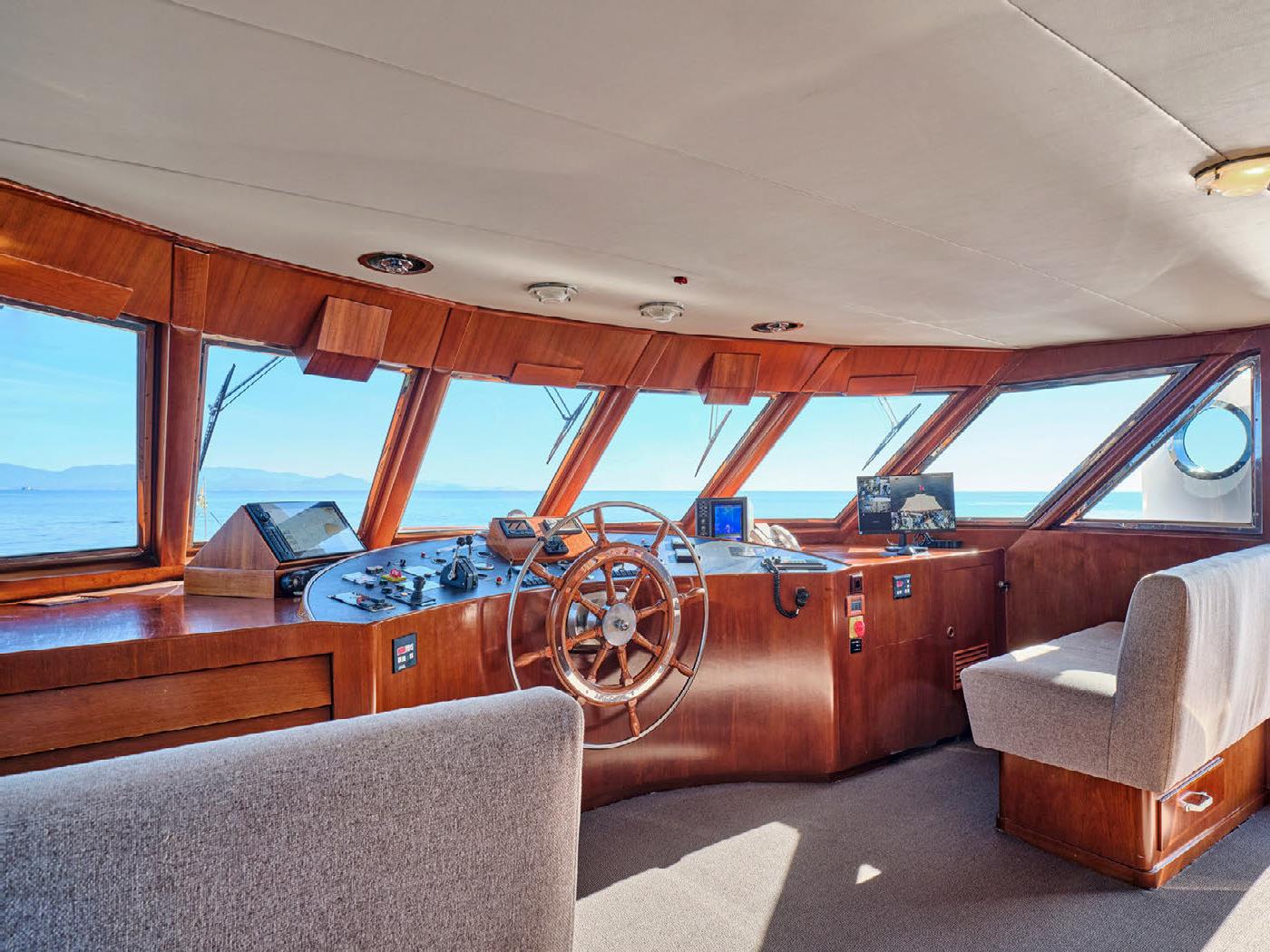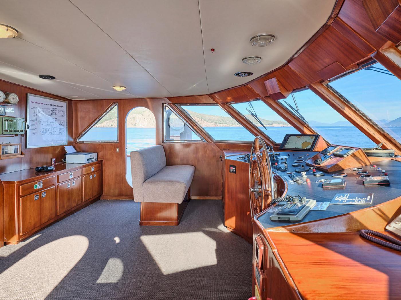 На солнечной палубе расположена дополнительная рулевая рубка, которую также можно использовать как смотровую площадку и удаленную площадку для принятия солнечных ванн, обеспечивая дополнительную приватность для гостей.