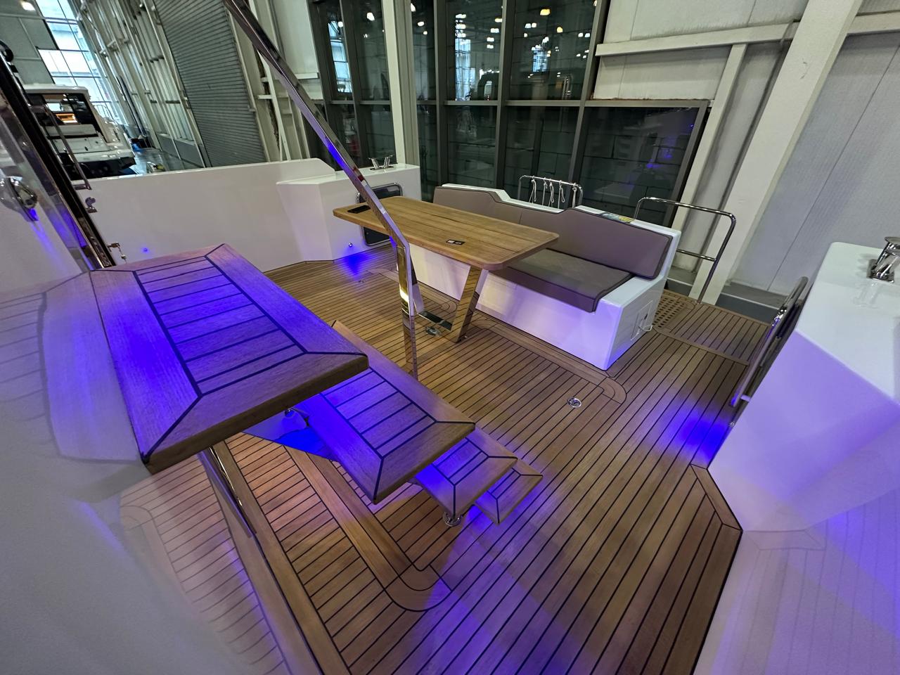 - Палуба из массива тика на носовой палубе, боковая палуба, кокпит, плавательная платформа, палуба флайбриджа, общая площадь 29,5 кв/м $19 005,00