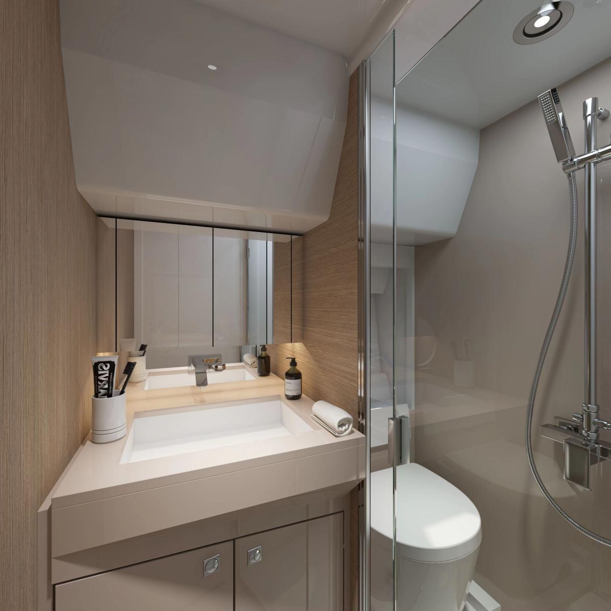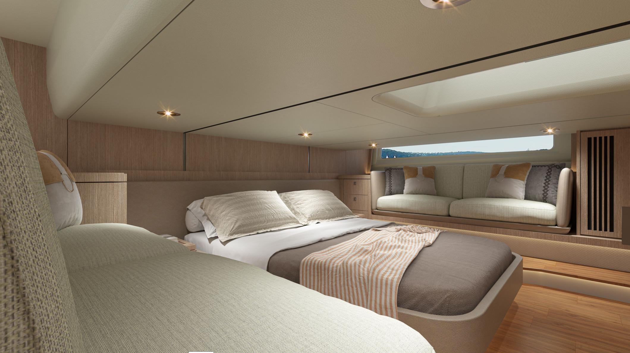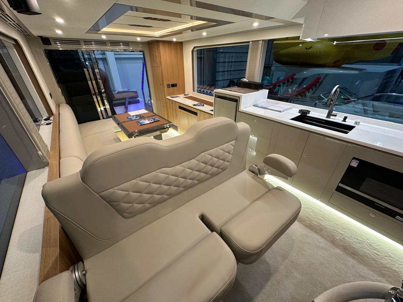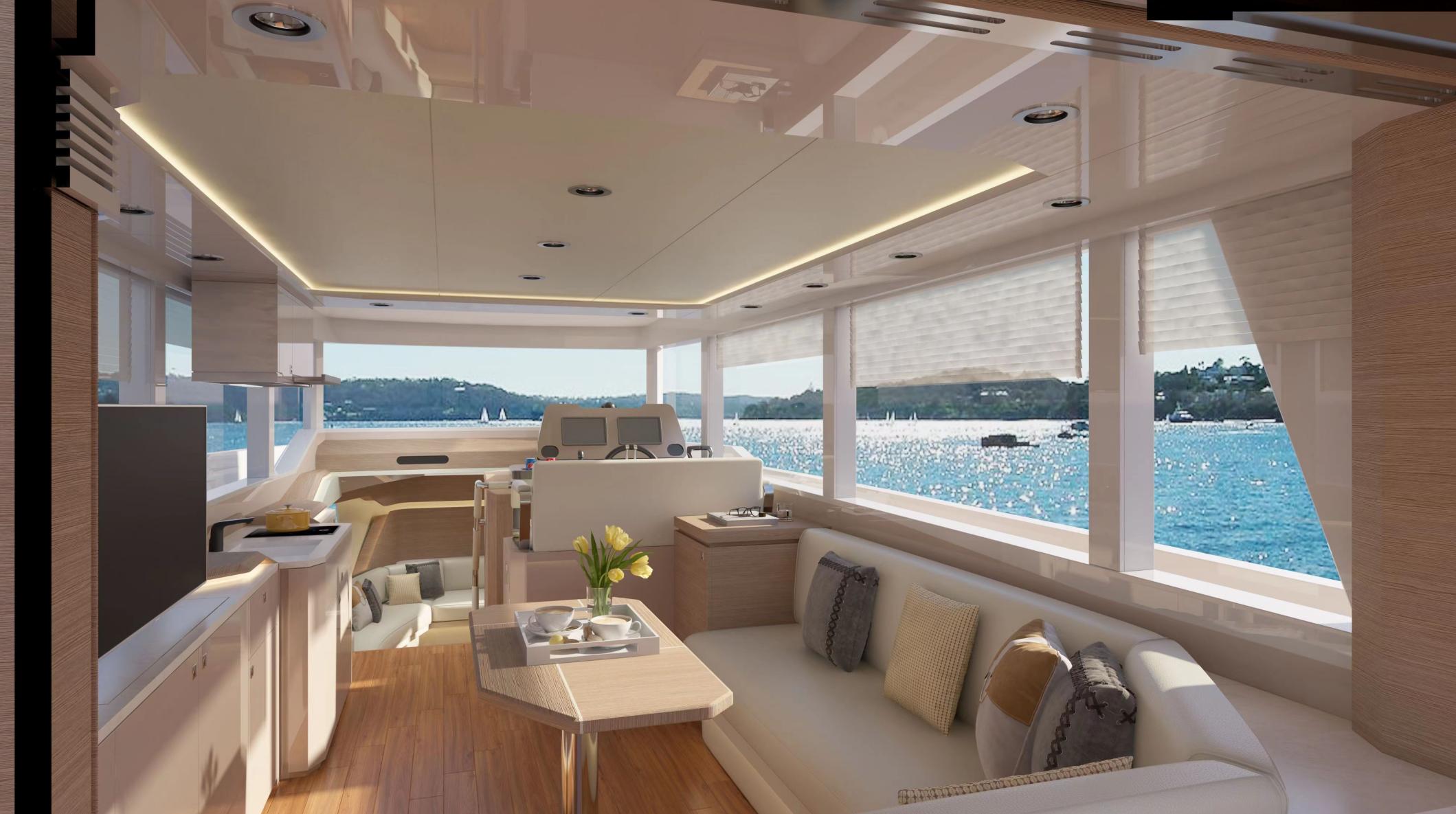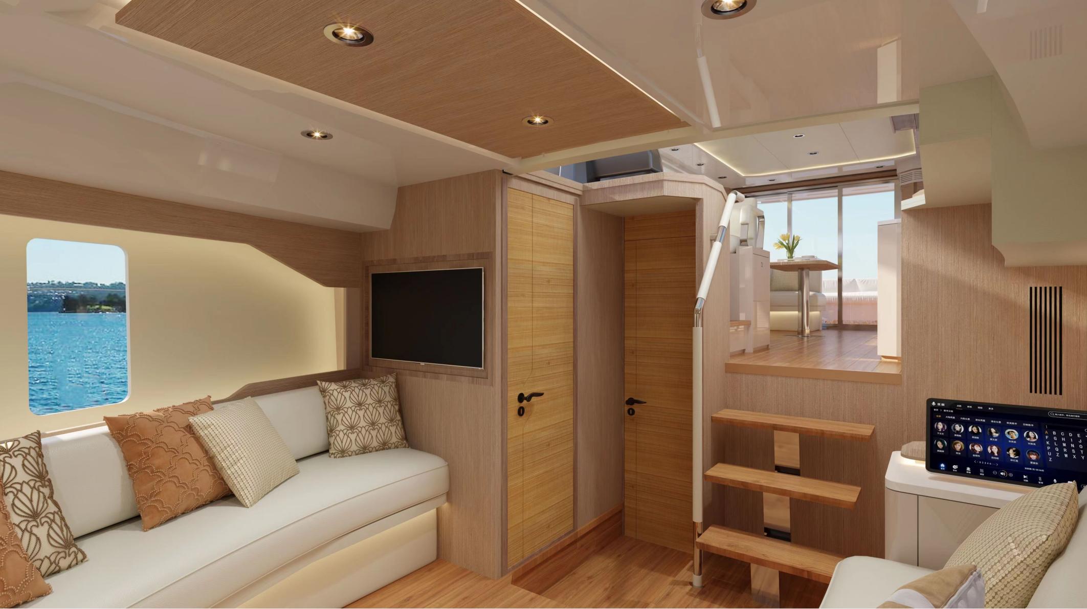 TY 460 — это 46-футовая стильная яхта для отдыха. Ее гладкие динамичные контуры создают идеальное сочетание стиля и мастерства. Экстерьер отличается характерным ромбовидным вертикальным носом и чистыми линиями корпуса. Обширные иллюминаторы от пола до потолка обеспечивают беспрепятственный обзор, плавно сливаясь с водой, предоставляя вам безграничный панорамный вид на 360 градусов.