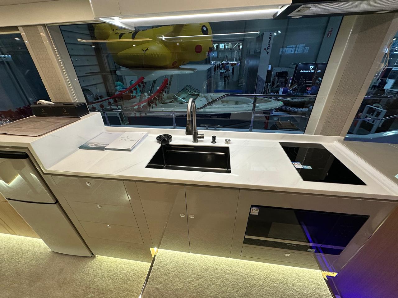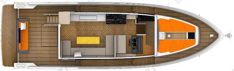 Дизайн 46-футовой яхты подчеркивает ее экономичность. Корпус спроектирован таким образом, чтобы обеспечить оптимальную работу в различных условиях. Эта великолепная яхта может похвастаться функциональным салоном и просторной открытой палубой. Стандартная планировка главной палубы включает встроенные кресла, обеденные столы, развлекательную систему, открытую кухню и полностью оборудованный пост управления. Она служит премиальным центром развлечений на воде, идеально подходящим для приятного времяпрепровождения с друзьями и семьей. Как и все яхты Eastar Yacht, эта модель может быть полностью адаптирована под ваши нужды. Компания также стремится по возможности включать экологически безопасные элементы в проекты своих яхт. Например, при желании в отделке салона можно использовать энергосберегающее освещение и искусственную кожу.