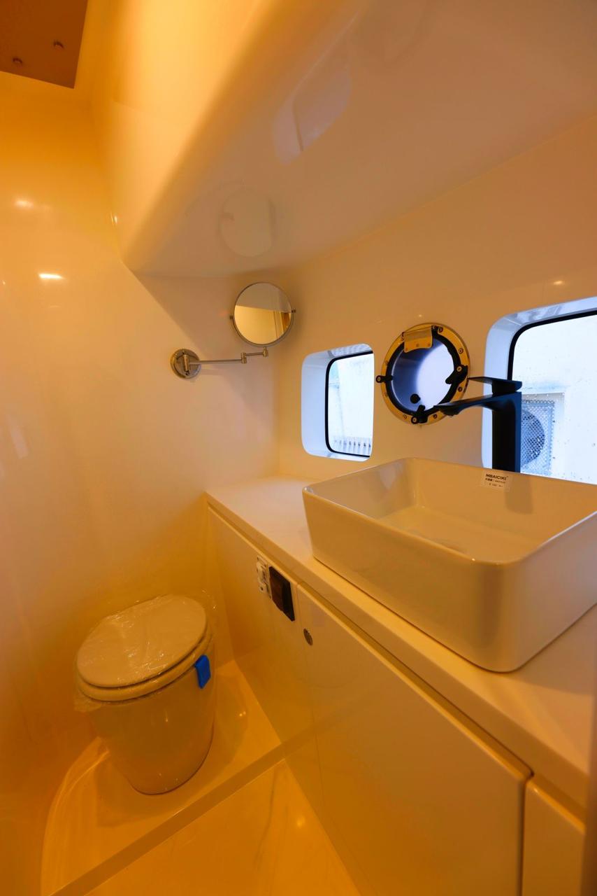 Все небольшие отдельные элементы изготавливаются отдельно из стеклопластика с применением вакуумной инфузии и пресс форм, делая идеальной все поверхности и края элемента. Вы можете это легко увидеть взглянув на обратную сторону крышки моторного отсека, или внутреннюю сторону любого рундука под сидениями в кокпите или на флай-бридже, либо просто взглянув снизу на плавательную платформу - вы увидите идеально ровную поверхность.