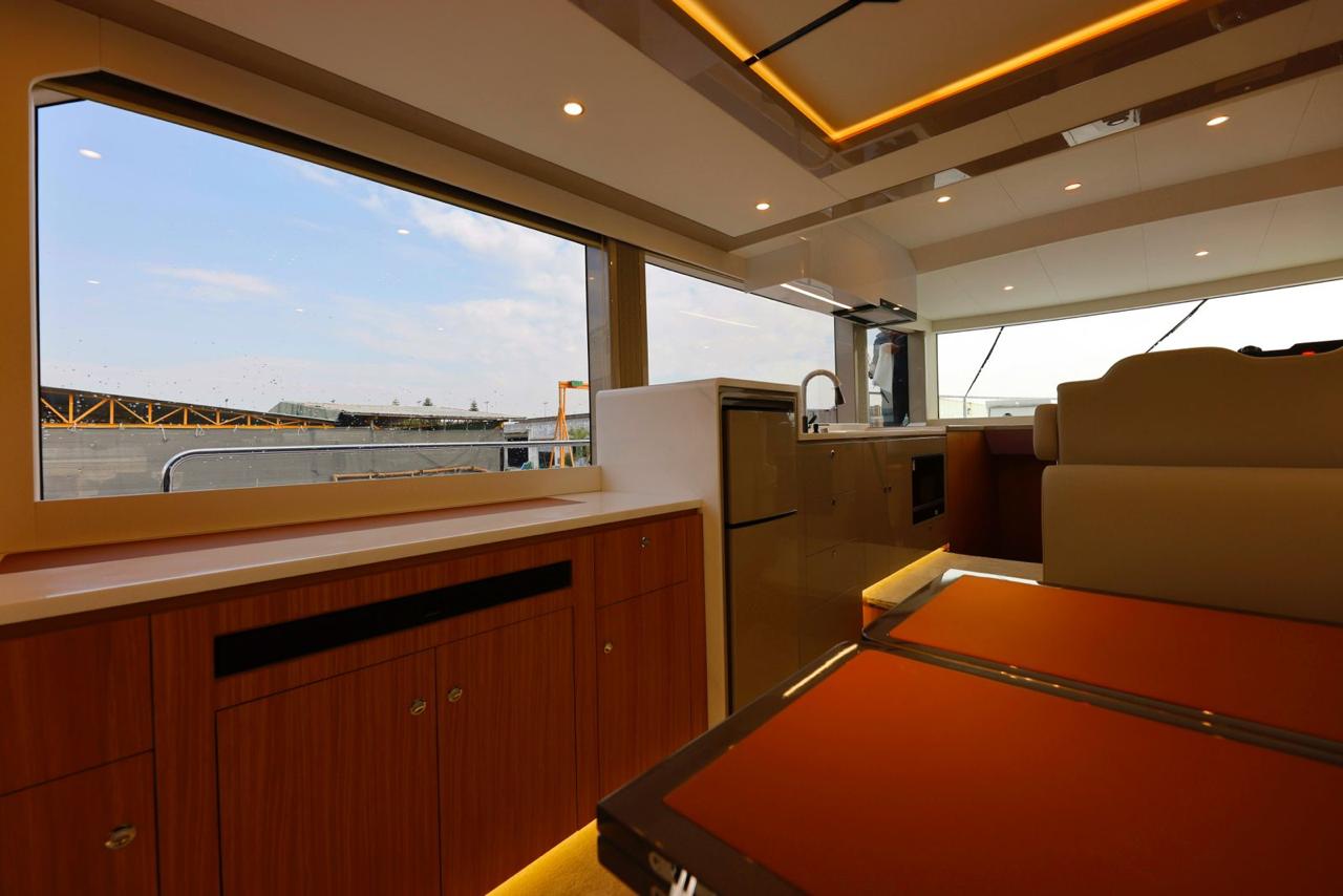 Дизайн 46-футовой яхты подчеркивает ее экономичность. Корпус спроектирован таким образом, чтобы обеспечить оптимальную работу в различных условиях. Эта великолепная яхта может похвастаться функциональным салоном и просторной открытой палубой. Стандартная планировка главной палубы включает встроенные кресла, обеденные столы, развлекательную систему, открытую кухню и полностью оборудованный пост управления. Она служит премиальным центром развлечений на воде, идеально подходящим для приятного времяпрепровождения с друзьями и семьей. Как и все яхты Eastar Yacht, эта модель может быть полностью адаптирована под ваши нужды. Компания также стремится по возможности включать экологически безопасные элементы в проекты своих яхт. Например, при желании в отделке салона можно использовать энергосберегающее освещение и искусственную кожу.